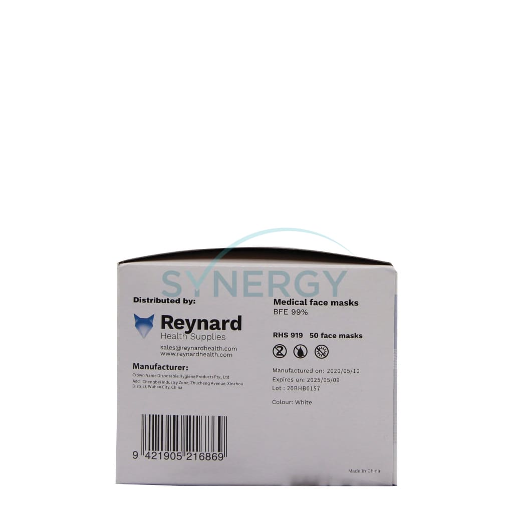 • Reynard Medical Face Mask , 3 ply with elastic loops