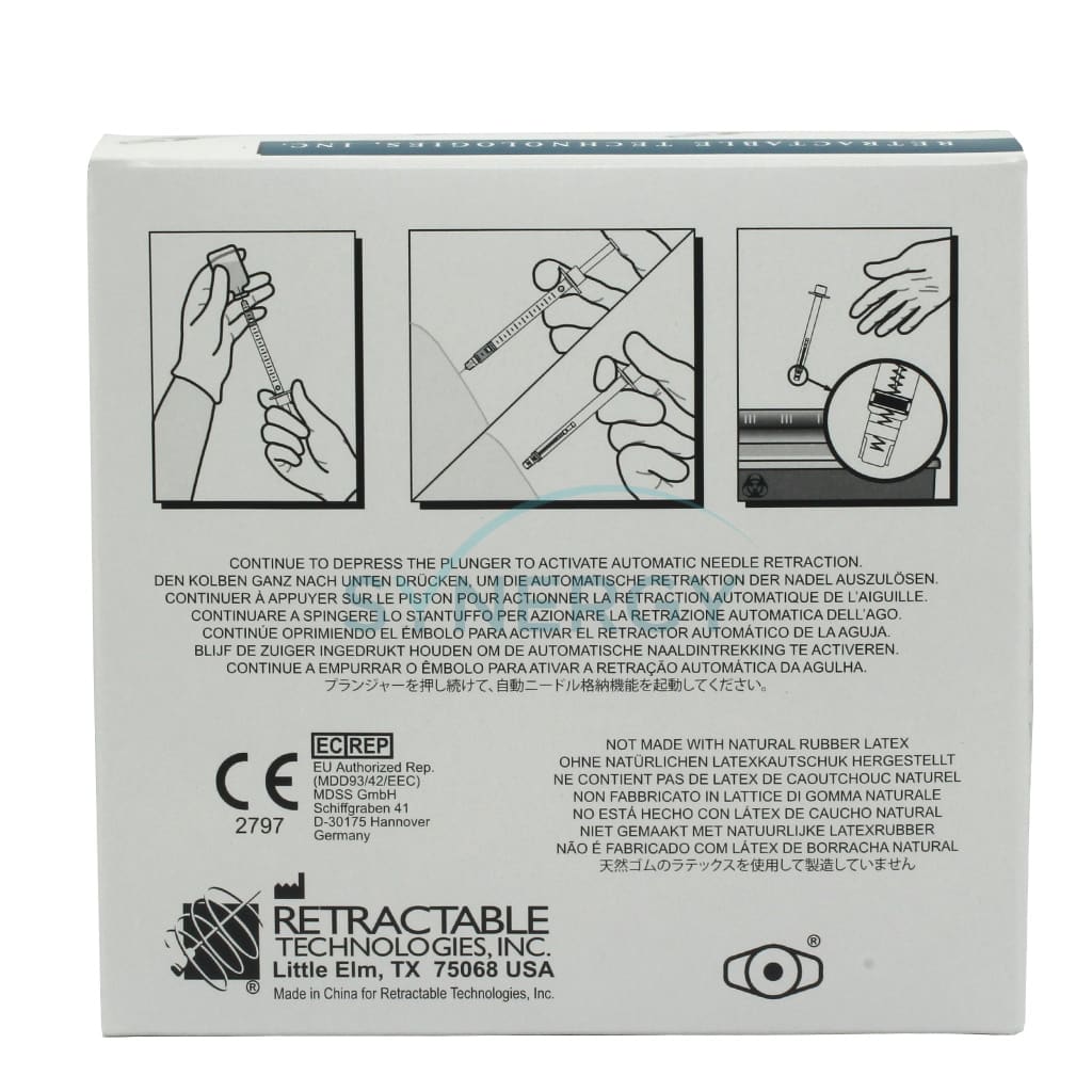 1ml syringe with permanently attached 25Gx1'' needle and integrated safety retractable mechanism: